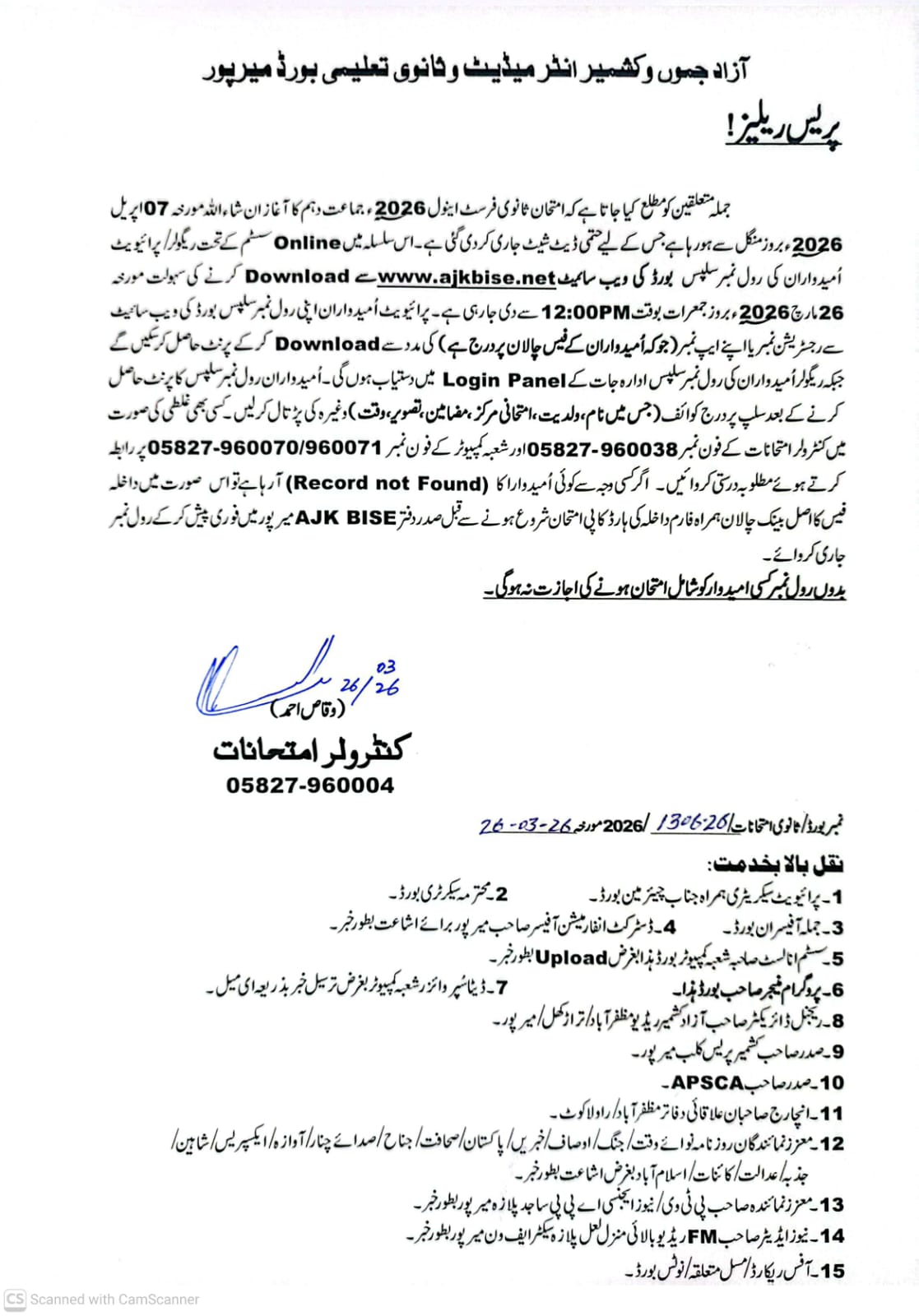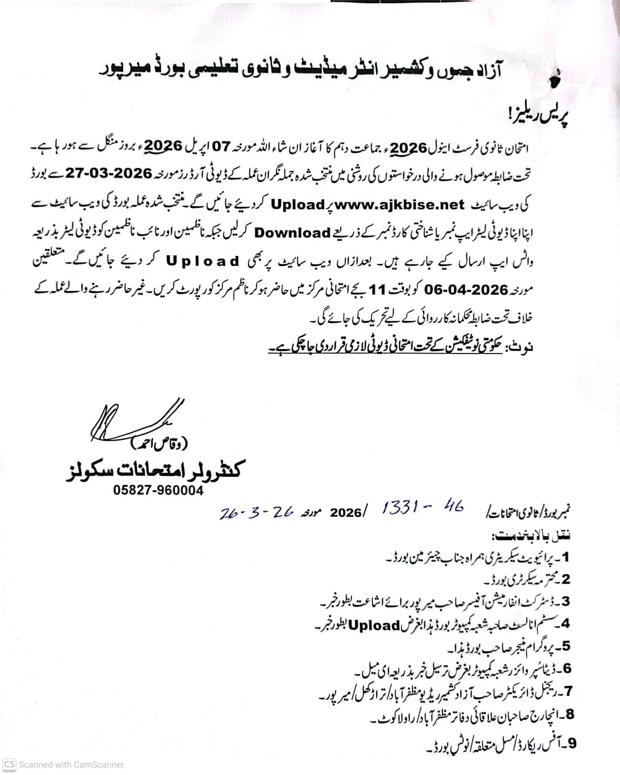 | 09-08-2025 | Press Release AJK BISE Mirpur AK | View/Download |