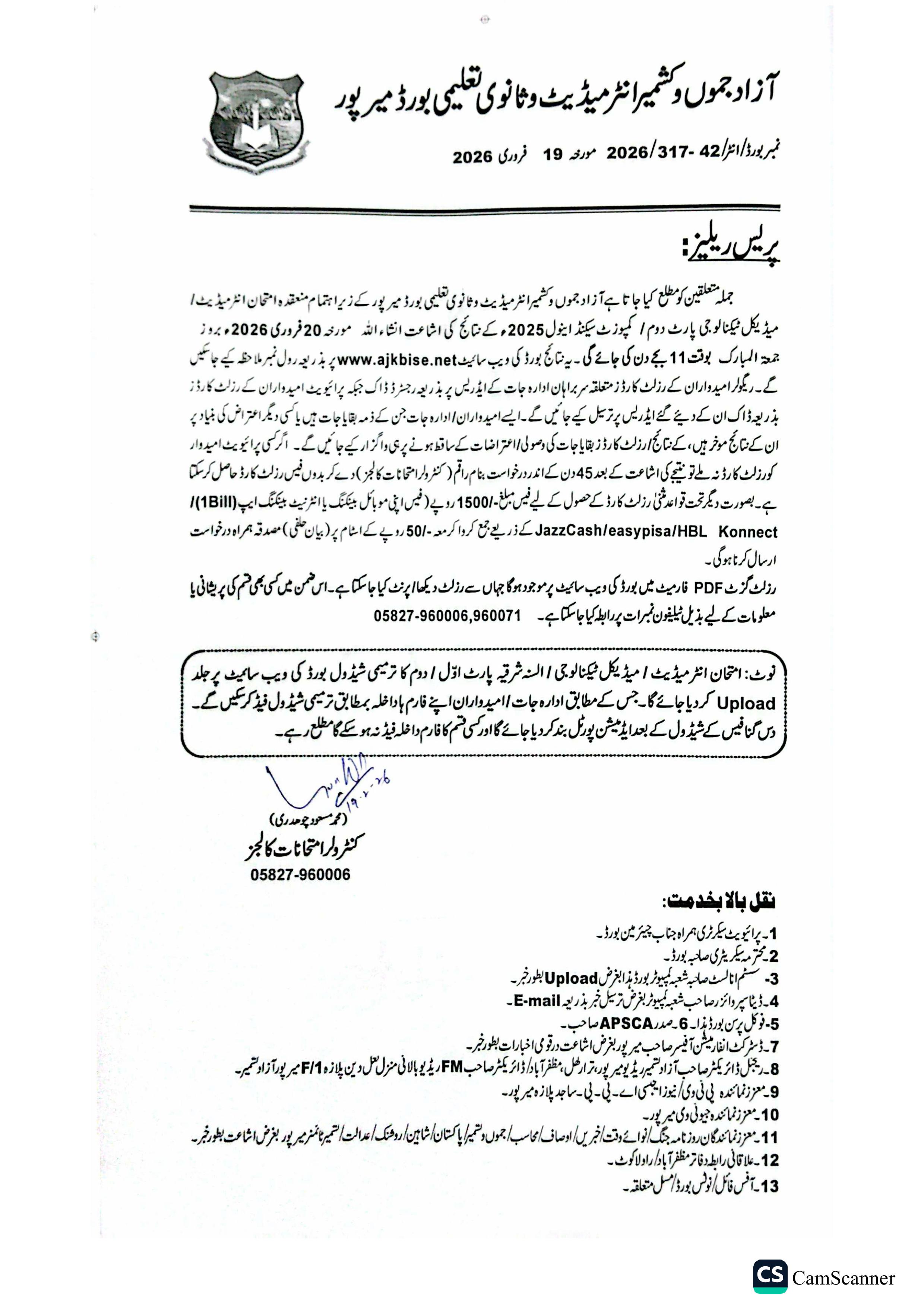 | 02-12-2025 | Notification Revised Grading Formula SSC & HSSC AJK BISE | View/Download |